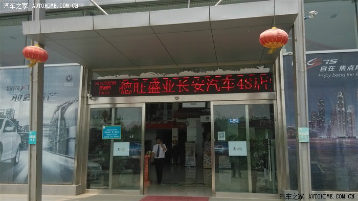 接下来就是去试驾以及谈价格了。去离家较近的4s店试驾了逸动和致尚xt,感觉基本还行。问从事汽车销售的朋友,他们说每年的六月和七月是销售的淡季,相对价格比较低,还有就是大河车展时候价格也很优惠。无奈就等待时机准备入手。终于等到了4月10号--4月13号的大河车展,10号那天我和兄弟一起开车先过去看看车展上的价格,晚上回家和家人商量了一下,13号那天一起过去交了订金,颜色选择了宝石红,虽然知道白色好看,但是朋友说白色时间长了会发黄。说是20天左右交车,然后就开始了漫长的等待。感觉那段时间过的好慢。终于在5月4号接到了销售美眉的电话,问我有时间去提车吗。由于接到电话比较仓促,就在电话当中约定8号提车。8号那天我专门叫上我的发小一起过去德旺4s店验车提车。下面的图片就是传说中的长安德旺4s店了,嘿嘿。