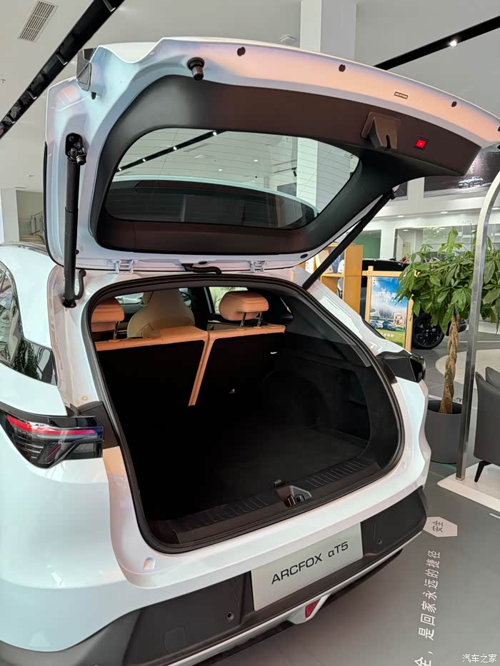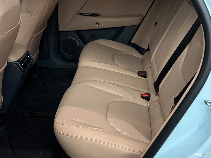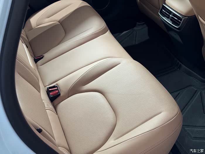 空间方面,极狐 阿尔法T5的车身长宽高为:4690x1936x1650mm,轴距为2845mm,级别为中型SUV,采用5门5座SUV的车身结构,第二排的乘坐空间表现十分宽敞,对于身高175cm的成年人来讲,腿部空间还有2拳以上的富余,座椅宽大厚实,采用仿皮的材质,支撑性还不错。行李舱的日常容积为400L,后排座椅支持按比例放倒,最大可扩展至1546L,装载能力十分出色。