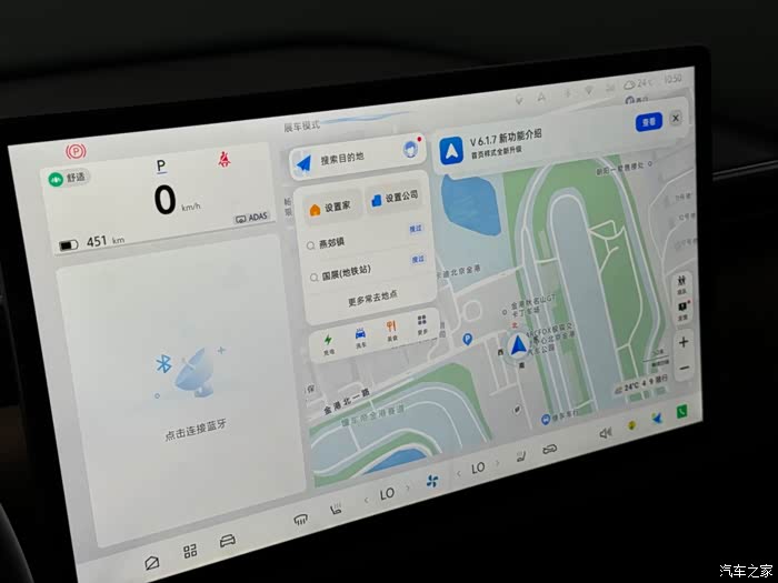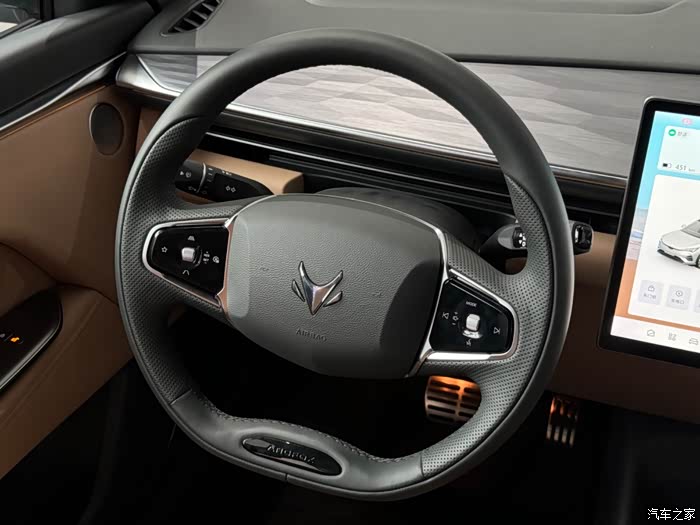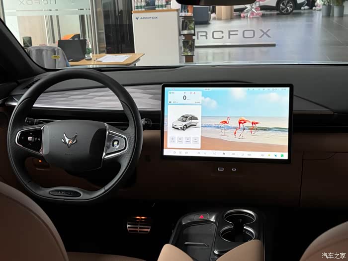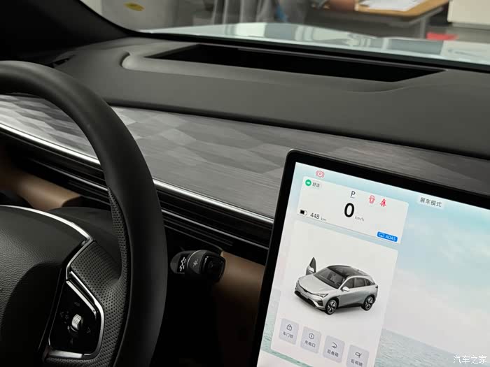 进入车内,新车的内饰设计延续了极简风格,中控台上的大屏幕占据了主导地位,内部的车机界面分为左右两块区域,显示效果比较直观。新车还配备了一款双辐式的多功能方向盘。