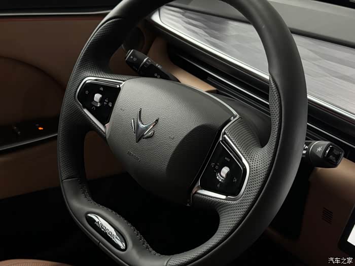 内饰方面,极狐 阿尔法T5采用了T字型的设计布局,中控台上没有任何实体按键,大部分功能均由多功能方向盘、车机屏幕以及语音识别进行操作,具有较强的科技感。两幅式的多功能平底方向盘造型时尚美观,采用皮质的材质,支持上下前后四向调节功能,换挡方式采用了怀挡式的设计。