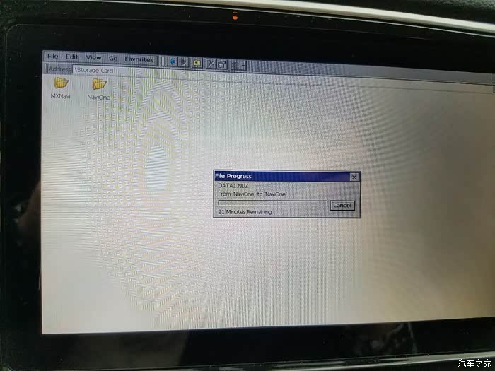 找到storage card那个硬盘,有32G哦,不用你再插卡的。找到MXnavi文件夹,剪切到另外没有下载导航的那个u盘里面,花了50分钟,记得一定要用usb3.0的u盘,不然要上90分钟了。待复制完成,把原先下载好的导航根目录全部复制到这个硬盘里面,然后等待————等待——————等待————————————完成之后关闭电源,重启。