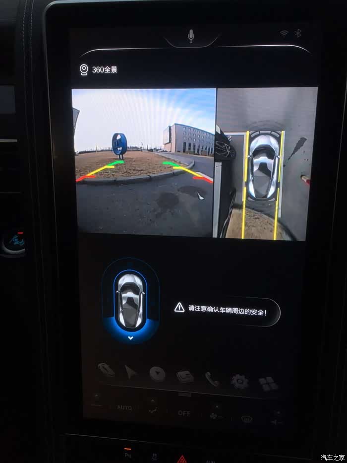 3、关于360全景,上了全景以后绝得倒车影响就是渣渣,真的可以达到只看全景不看路停车或者怠速的效果!全景配合方向盘转动的提示线让再小的小白都能应对任何侧方与倒库。但这个分屏设计真是让我一时没能接受,经常会看串!