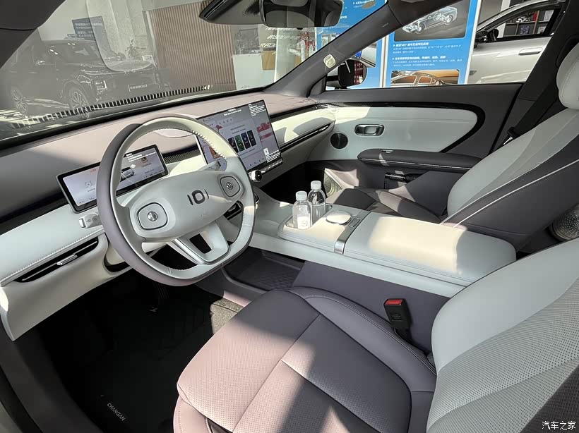 细看它的内饰颜色配搭,估计很多女生都会迷上。白色加上粉紫的混搭,照片可能没能拍出它的魅力,现场看不错👍嘀,感觉这款车要比a07好看多。