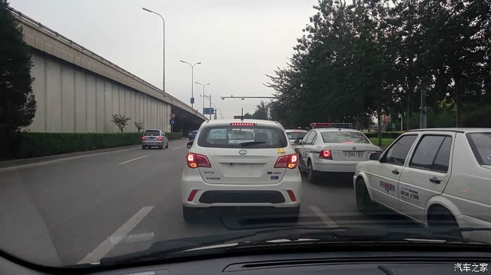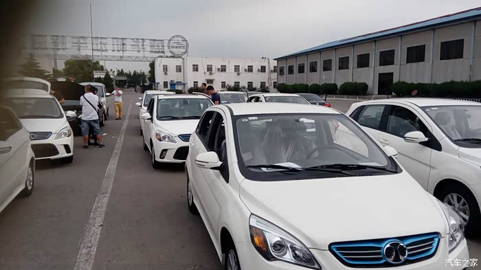 .7点20,一路双闪,浩浩荡荡的驶向盛华检测场。领队大哥开车不给力,一路慢车道,时速不到40,看着那是一个着急啊,奈何我不知道地方,只能耐心的尾随领队大哥屁股后,差不多8点安全达到 。运气不错,我们这队小E排在占了一排车道。小E围观率真的很高,被其他的上牌汽油车主一直围观,各种提问,又一次免费充当北汽的讲解员(@小博士美女,给颁发个好人奖呗)。过半小时后,艾玛,吓了一跳,不声响的,突然发现了不下40辆北汽新能源。看来这车这段时间这车真的很火啊。