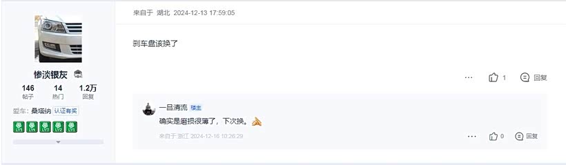 南方天合刹车盘使用感受。