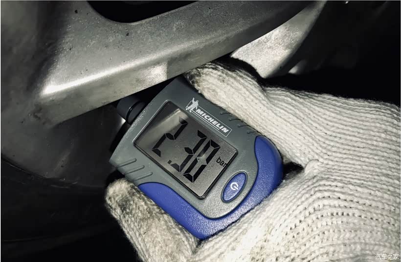 所以胎压根据轮胎的橡胶配方稍作调整,目前设置前轮2.3 Bar,后轮2.3 Bar。