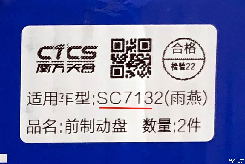 原厂刹车盘由南方天合生产,适用车型SC7132。