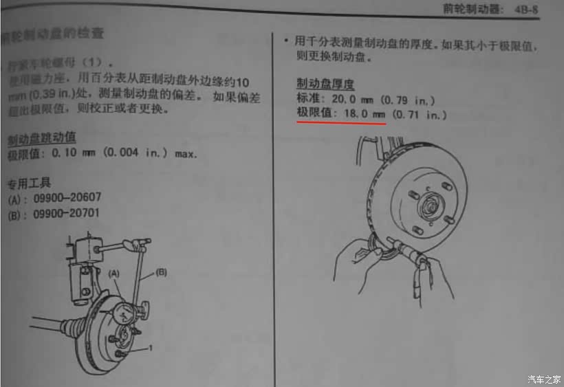 维修手册刹车盘标准厚度20毫米,于是我拿出了卷尺。