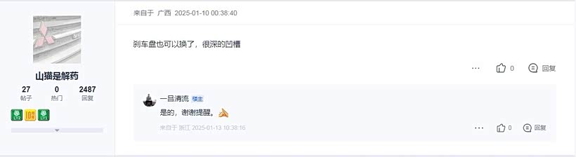 刹车盘上有防锈油,前面几十公里需要格外小心,刹车比较软。