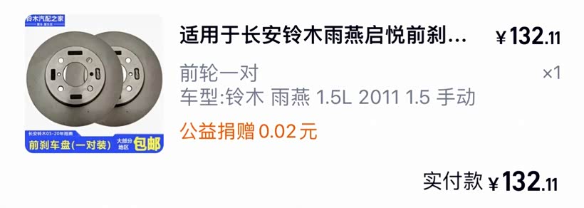 一副雨燕刹车盘只要132元还包邮,最主要它是原厂件。