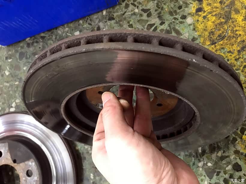 师傅动作很快,两个旧刹车盘已经被拆下。