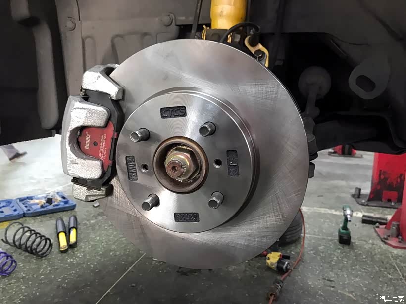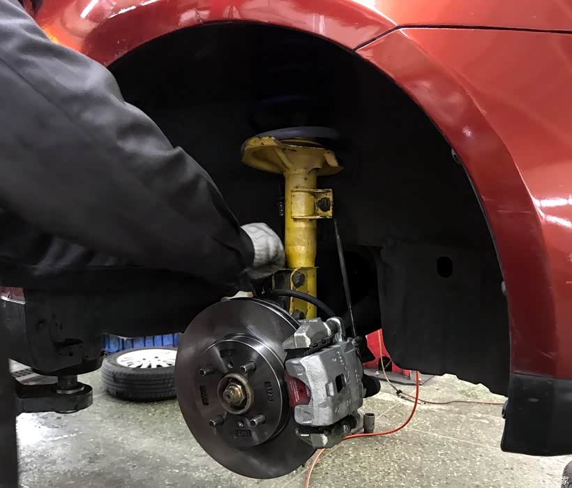 至此,减震器、刹车卡钳分泵、刹车盘、刹车片都已换新。