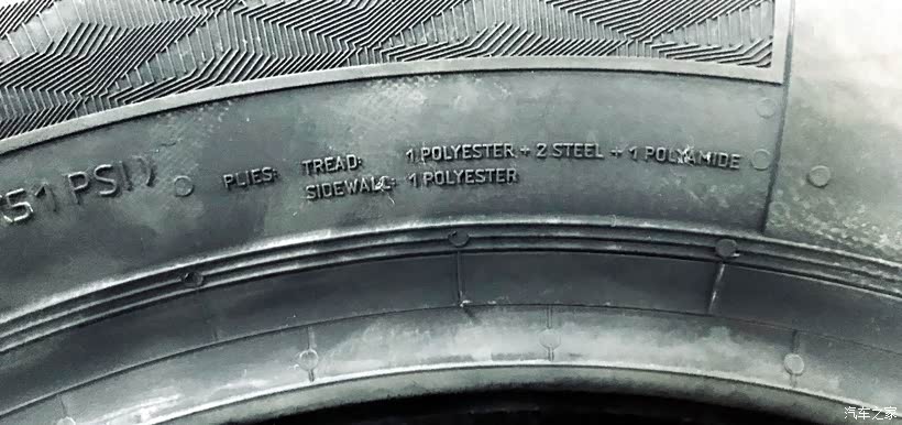 胎侧:1层聚酯纤维。