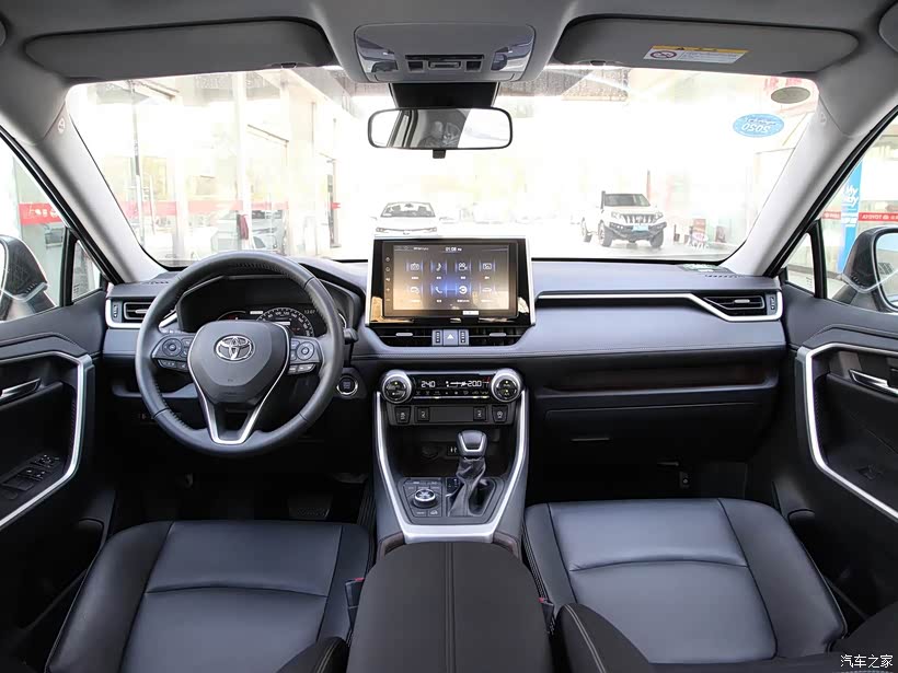 内饰的话,荣放和威兰达基本保持了一致,整体中控台非常平直简约,简约得甚至像是一台国产新能源车,在取消了传统仪表台的设计,丰田给他们换装了一块,黑边非常粗的小屏幕来顶替仪表台的作用,有点不太习惯,没想到传统车企也这样搞了,中控台中间,海外版车型采用的是小屏幕+下方搭配一排实体按键的设计,虽然中控屏黑边也是非常大,但实用性方面我觉得还是要更好一些。