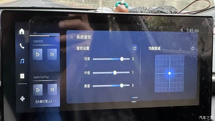 发现音响调节界面,右边方格的位置,以前是有显示4个座位的,现在没有了,只有方格,
