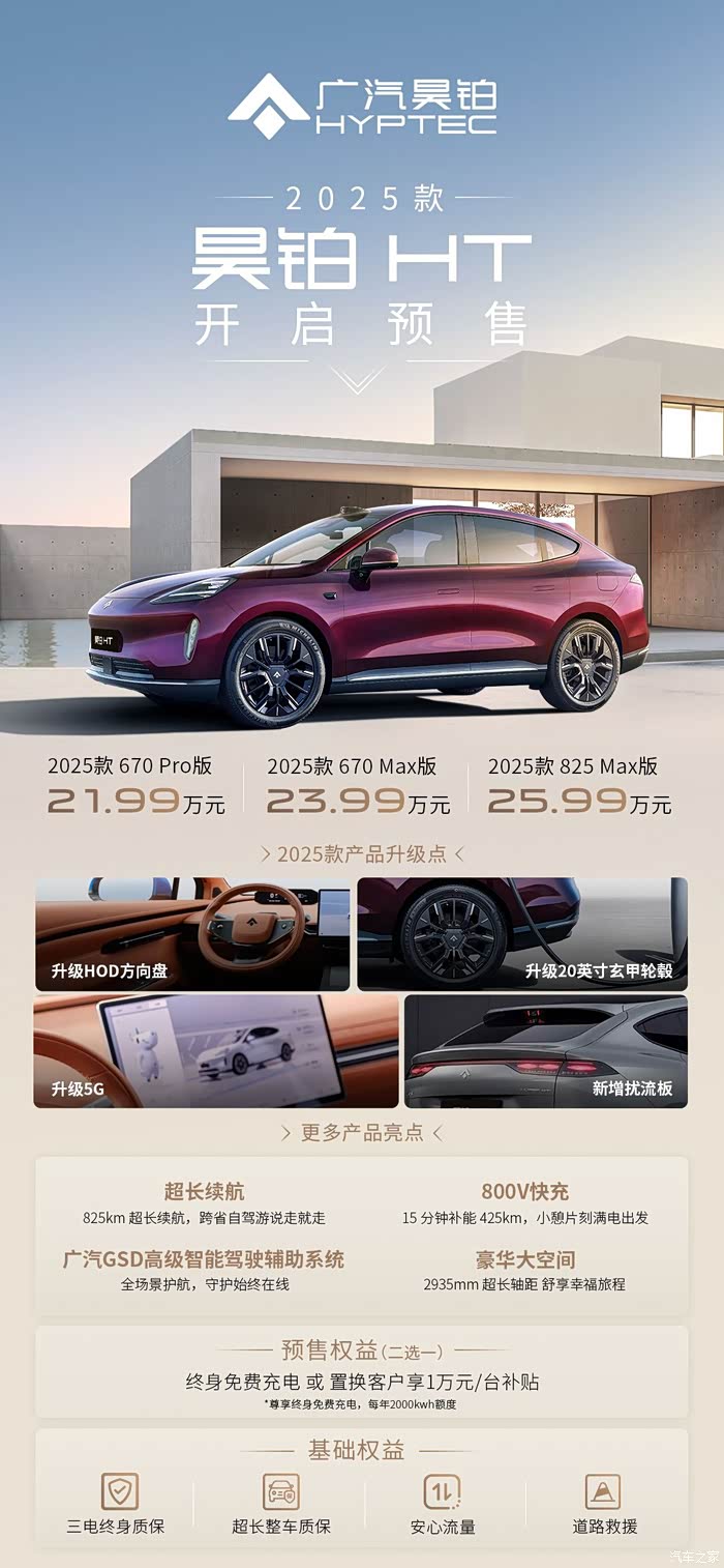 面临品牌生存影响力和销量承压,在五一节后,2025款昊铂HT终于开启预售。我仔细比较了一下25款和24款的配置,实际区别真的不大。主要升级点有: