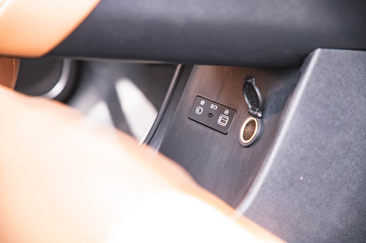 中控台下方也有一个很大的储物格,并且配备了点烟器接口和有线接口。