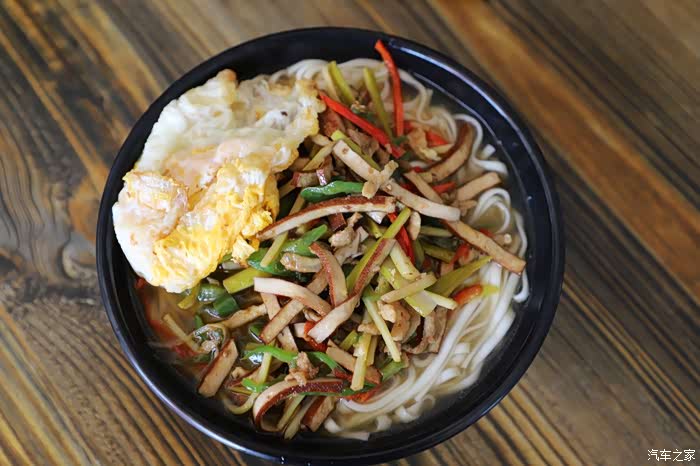 第二天(6月18日),一早起来民宿老板亲自下厨给我们做了一碗面,说是青椒肉丝面,上桌的时候发现还有笋丝、香干和荷包蛋,又是超出预期,味道不错,愉快的一天从一碗面开始了。