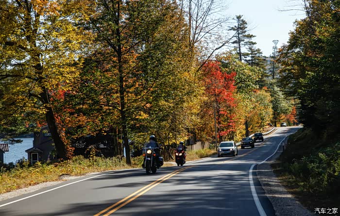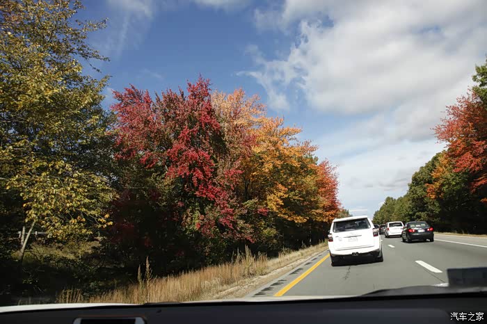 往北开,Boston城区而过,随着纬度的升高,红叶,黄叶,绿叶交错在一起,越来越美,我就剩“OMG!!”“Lookat this!””It’samazing!!!”