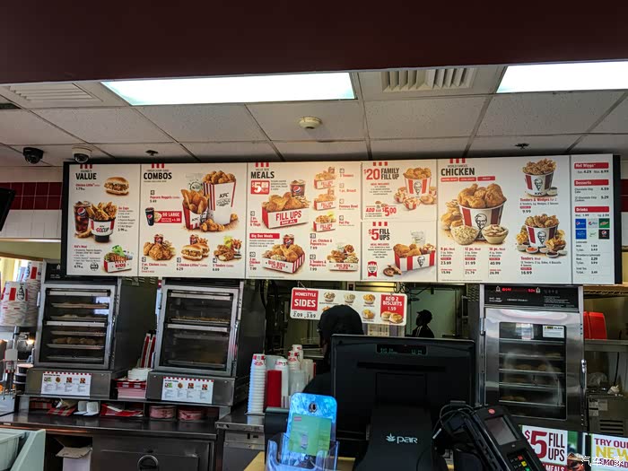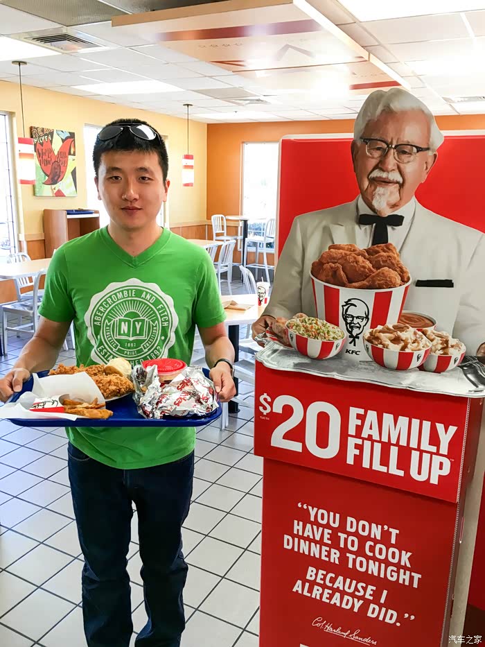 回去的路上,猜怎么着?看到了KFC,早就听说美国本土的KFC特别不怎么样?基本上还真是很难见到。既然碰着一个,抱着试试看的态度,还是要品尝对比了一下。还真不怎么样!不过可以选择的种类还真不少,有鸡啊,鸡啊,还有鸡啊。。。不比不知道,国内的KFC是有多好吃!!!