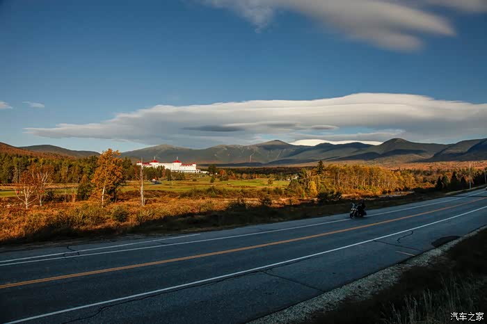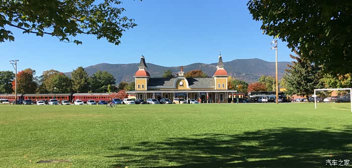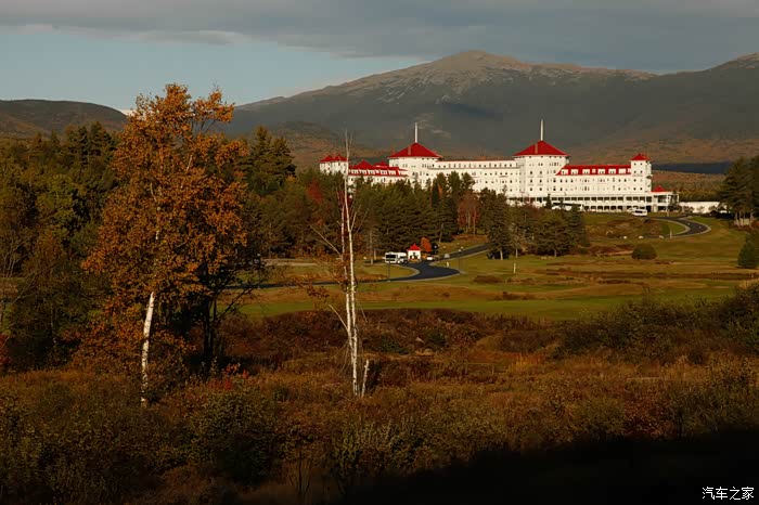 看那远处的白色建筑,那就是著名的OmniMountain Washington Hotel,这个季节标间要400刀一晚。到了冬天,背后的上就是白雪皑皑,一样美得不得了!