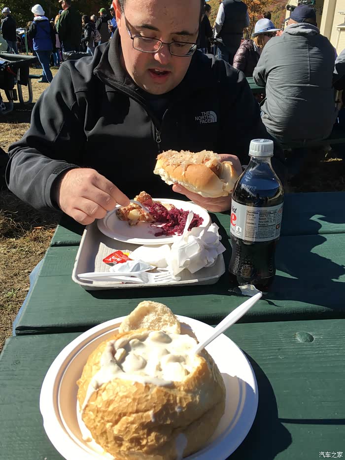赶巧是德国的什么节日。德国的饮食似乎就是啤酒、香肠、面包,索然无味。不过把我最爱的Clamchowder 放在面包里,挺有创意的,还真是超好吃!!