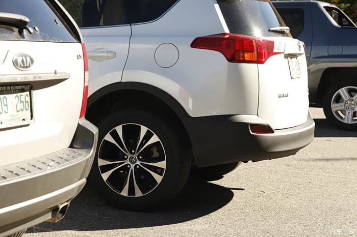 好吧,在一个山顶,另一个RAV4朝我们开过来,我承认我之前说错了,还是有烟熏轮毂的,是选配吧,比较少见,而且这个车不是白色,是珍珠白!