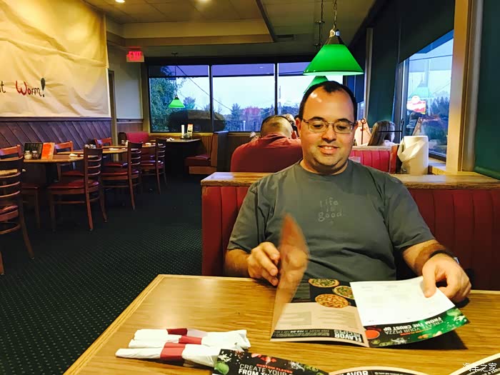 晚饭呢?好奇地发现了Pizza Hut,还真没有尝过美国本土的必胜客。跟国内必胜客的灯火辉煌相比,这里的必胜客简直就是乡镇级别的,而且是比较专注于Pizza,味道还可以。
