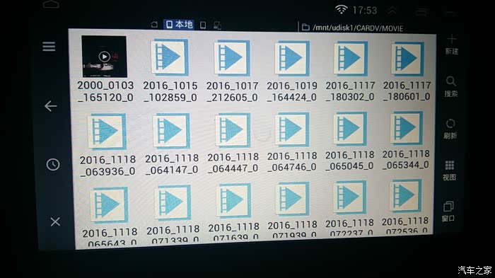 连接行车记录仪:这个功能有两个方法,一是用视频线连接两个终端,可以在车机上实时看记录仪里的内容,二是用USB数据线连接车机的U口,可以停车后读取记录仪里的视频文件。。。我选择了第二种,开车的时候没必要操作它。。停下来接根线而已!