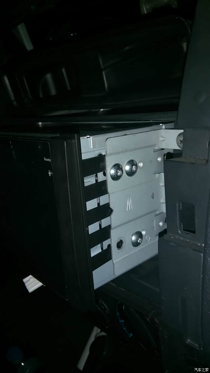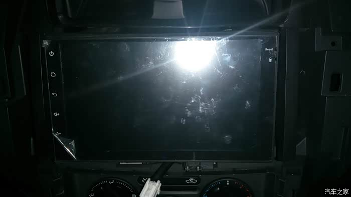 第三步是安装新机器,把DVD导航上两侧的原车固定支架摘下来,它的缺德之处是螺丝是梅花形的,需要专用的螺丝刀,还好单位的电工手里有,把这个原车支架和改造过的边框固定在主机两侧,再把电源线原位插头插座对插,拧上GPS和收音机,没问题,USB接口没问题,原位接上倒车影像视频头和倒车检测线,把露出金属接头的地方全部用绝缘胶布包好,扣上中控盖板,哈哈。。严丝合缝。。。没问题!