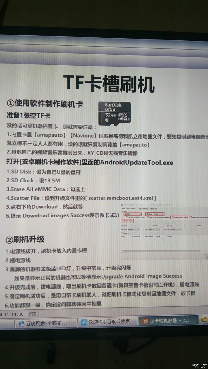 按照客服的说明,我得知机器的主板背面有个TF卡槽,可以升级内存,据他们的技术人员说最大装过64G卡,我不用那么大,我就装个手头有的MAXSELL C10的16G卡就OK了,原来的主板内存16G,系统占用5G,可用内存9G多,还被高德导航占据了7,8个G,主板内存就让它履行导航职能吧,后装的卡里放点歌放点软件就OK了!