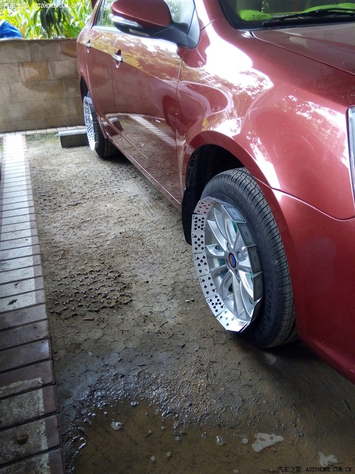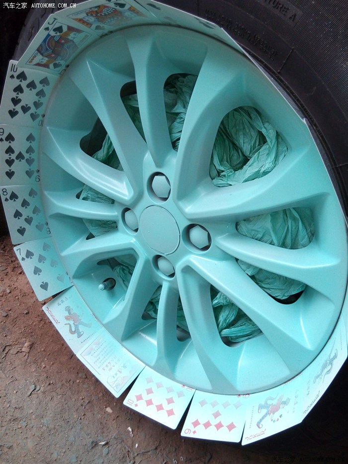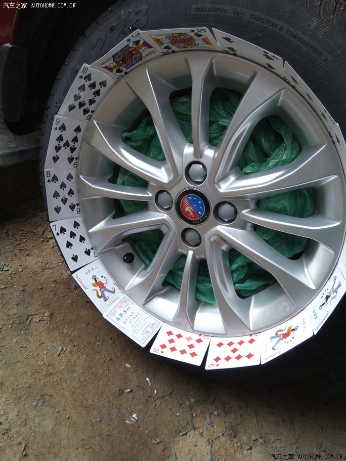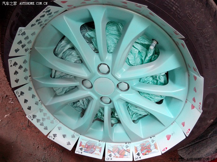开始插扑克保护胎面不被喷到,塞塑料袋保护刹车盘