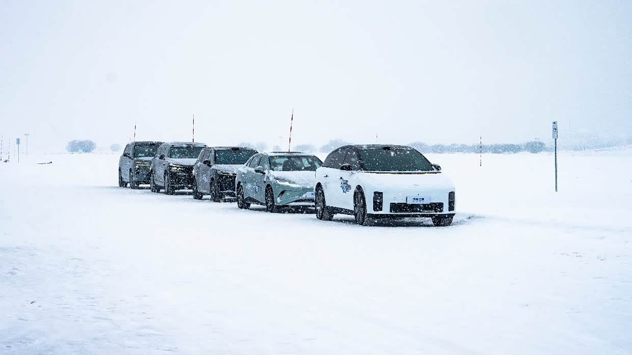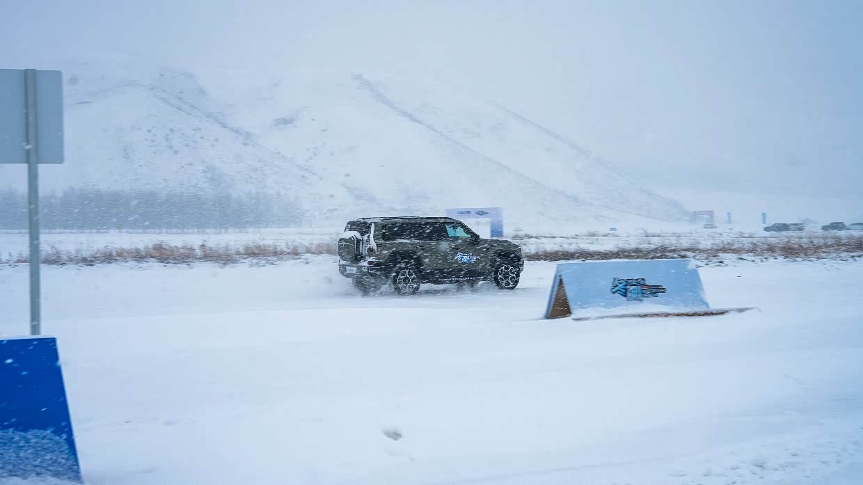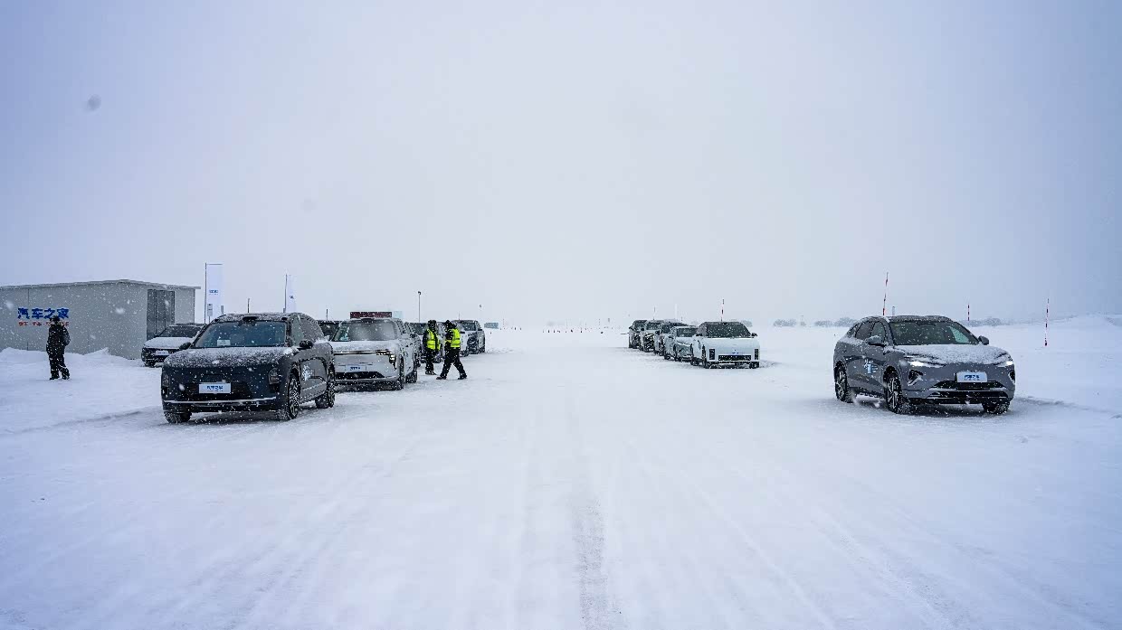 测试赛道是一条4公里的环形跑道,就在牙克石的冰雪测试场内,路面被持续降雪覆盖,和咱冬天上下班遇到的积雪路面没啥区别。所有车辆都按照统一标准设置,空调开到24℃,风量二档,同时打开前挡风除霜、雨刷(应对持续降雪),驾驶模式调为标准模式,由专业驾驶员按照60-80km/h的日常通勤速度匀速行驶,全程不刻意省电、不暴力驾驶,完全模拟咱平时上下班、逛超市、接孩子的真实工况。