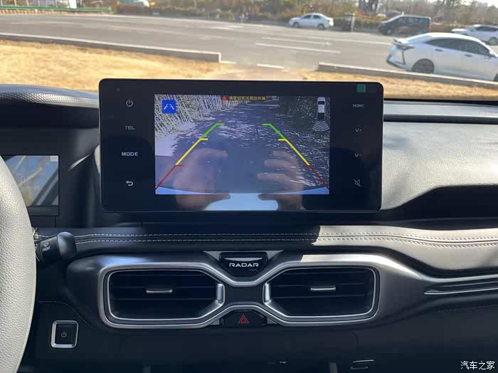 中控屏操作很流畅,算不算特别丝滑,但没有卡顿的情况。这个也算是小小意外之喜,因为传统燃油皮卡的车机多数比较拉垮。车机功能不多,但实用。就比如说倒车影像,显示就很清晰。对于初次驾驶皮卡的“新手司机”来说,停车可以方便很多。