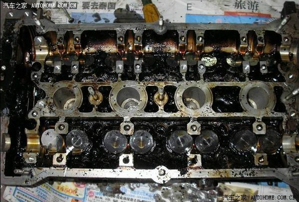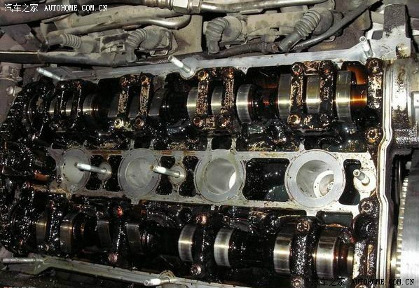 下图是引用网络图片,大众帕萨特使用矿物油(黄X牌)发动机内部状况。