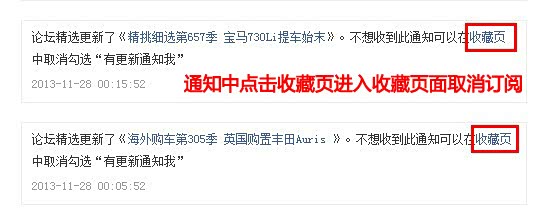 3、在通知中点击“收藏页”进入收藏页面取消订阅