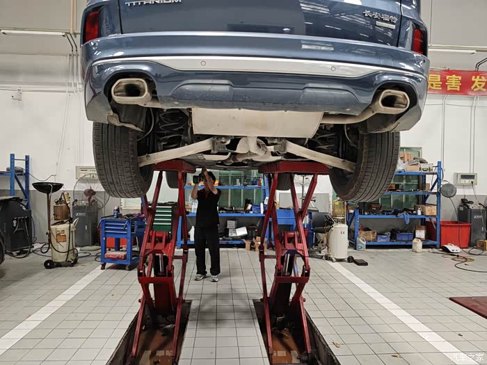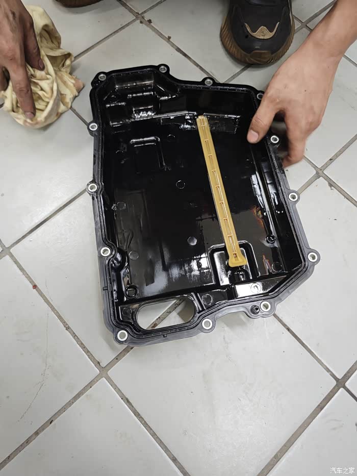 等了一个多礼拜配件来了,后减震换了,荧光剂也加了,可是还是检查不出问题,油渍有但是还是查不出哪漏了!只能继续往厂里打报告,这次等的时间有点长,快一个月才回复说要把整个油底壳换了,好吧那就换吧!这次换完油底壳,师傅还在外圈加了一层胶,让开段时间再过去看下!