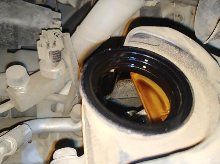 要想彻底换机油, 估计要跟变速箱一样, 把 发动机的油底壳拆下来清洗。。 油泥基本上都是附着在油底壳上面的,厚厚的一层。