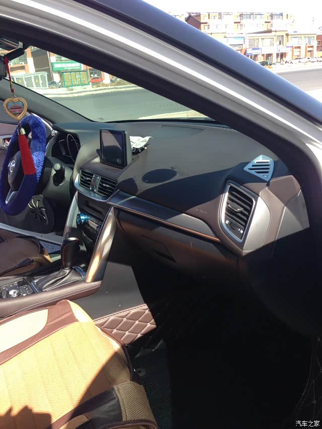 不满意的就是头部空间和后座中间凸起那么高导致长途中间坐的特别累,头部空间每次都要调到最低才舒服,不然头发就在车顶蹭着,本人身高178CM哦。其次就是空间啦,马自达专吃轴距30年嘛,这不是人家故意的哦。不过我觉得还算够用吧,但确实同级别最差的空间表现。还有一点特不方便,每次在市内行驶总顺手把自动驻车开开比较方便,但倒车时必须要关掉,不然倒车时好像被什么东西卡住了还有异响,起初我以为刹车有问题后来问了才知道必须要关自动驻车,好麻烦哦。