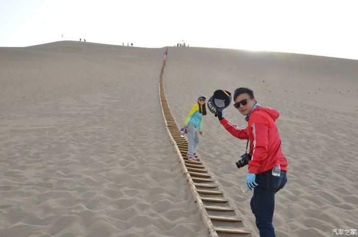 又高了几百米!因为附近没人,又没三脚架(···比较业余,勿怪)··只好放在车顶上自己来一张!4个人的小合影!