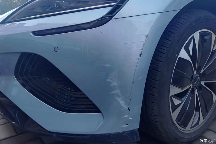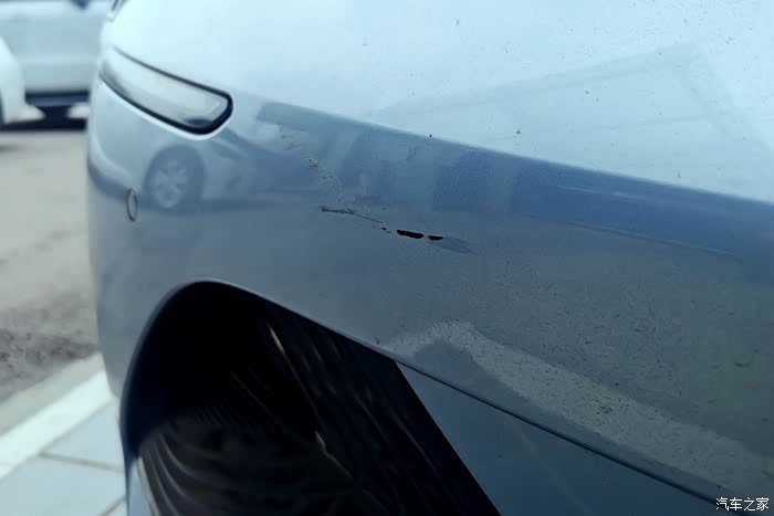 这是前保险杠右侧的刮伤,也是以前留下没有处理的。