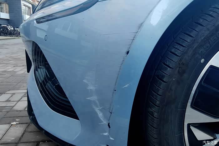 当时都是因为上班着急打卡,所以尽快拍照取证,对方报了保险后,就都把车挪开了,我看着伤痕累累的前保险杠着实心疼的蓝瘦。最担心的问题是左前大灯的灯卡子断裂,这样得更换新大灯,还得去4S店进行定损才知道是否需要更换。不过这次是全杠喷漆,可以把之前被剐蹭没有处理的位置都给维修一新。