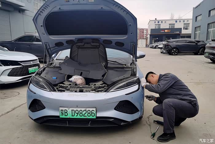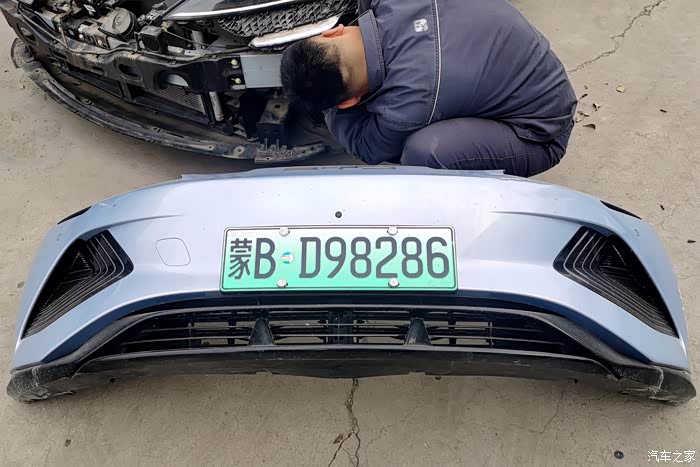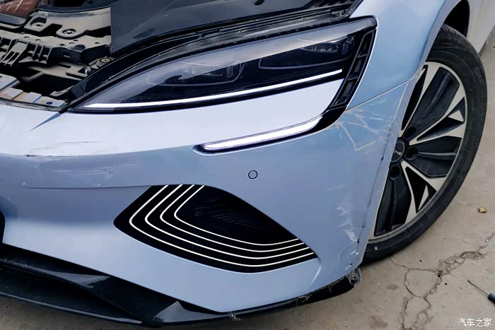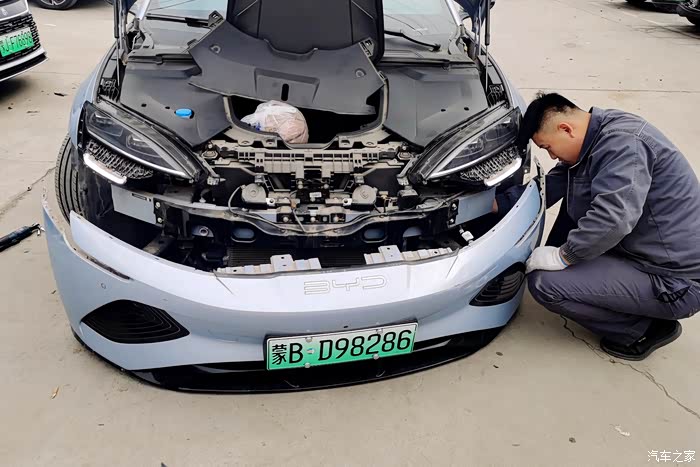 维修技师非常认真的做了检查,海豹的灯卡子没有受到损伤,所以不用更换前大灯。这次维修只需要对前保险杠进行全杠喷漆即可,只有两三天的时间,并不会耽误用车,另外家里还有其他车辆在这几天可以代步使用。