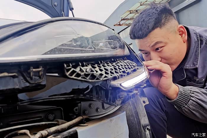 车辆开到室外,在阳光充足的情况下检查漆面是否有色差,然后安装日行灯总成和前包围下裙。