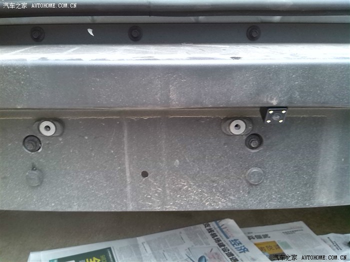 躺倒下面,找个人帮忙把塑料保险杠下沿往外面掰。用一根细软铁丝从右牌照灯孔穿进去沿着牌照灯线的方向(朝右后轮)伸进去,在下面看到铁丝后,把刚才绑成一条的摄像头线勾进去。
