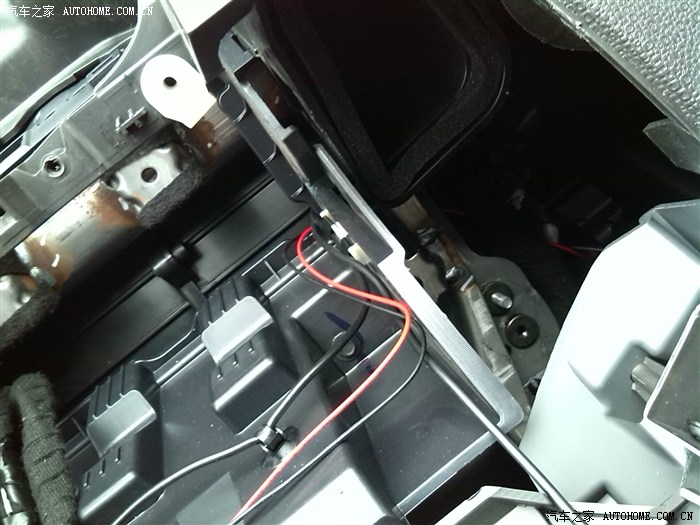 由于DVD主机要放到底,所以几根主线都要穿过中间那个孔。SD卡延长线布到手套箱。