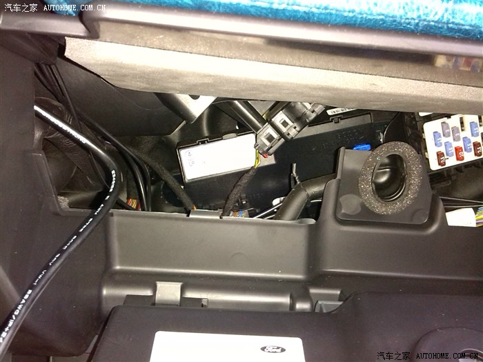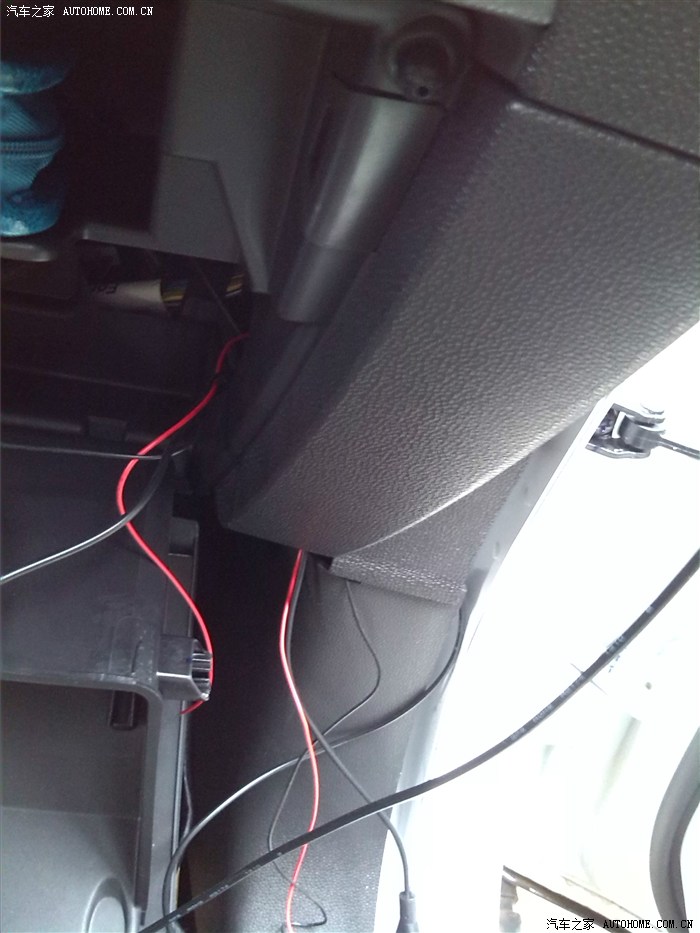 提前把手套箱卸下来,线从里面一直布到副驾驶门框边上。