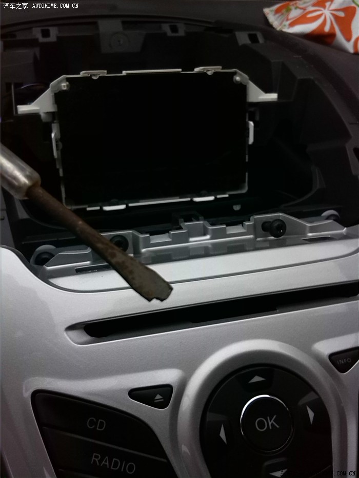计划了好久,终于抽时间淘了一个徐港导航,倒车后视一起1875大洋。自己花了大半天时间研究安装完毕!期间有一些小问题,一边拍照片一边旺旺求助,售后也跟耐心解答,在此赞一个!开始动工了!请忽略我的业余设备,不过为了避免金属起子翘坏塑中控,我还特意在前面包了一些塑料。左边放的就是新导航屏幕整体,放旁边是为了对照卡子的位置,找准施力点与施力方向。