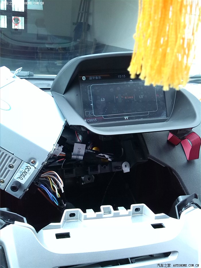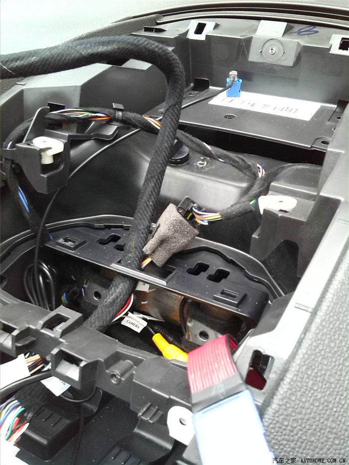 开始穿线,从这里下到手套箱下面……GPS信号线,MIC线,倒车后视线统统下去……