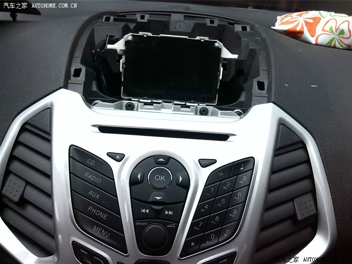 原车小屏幕拆下。这个插头是上面一个u型的锁扣要掰到一边,就能拔出来了…